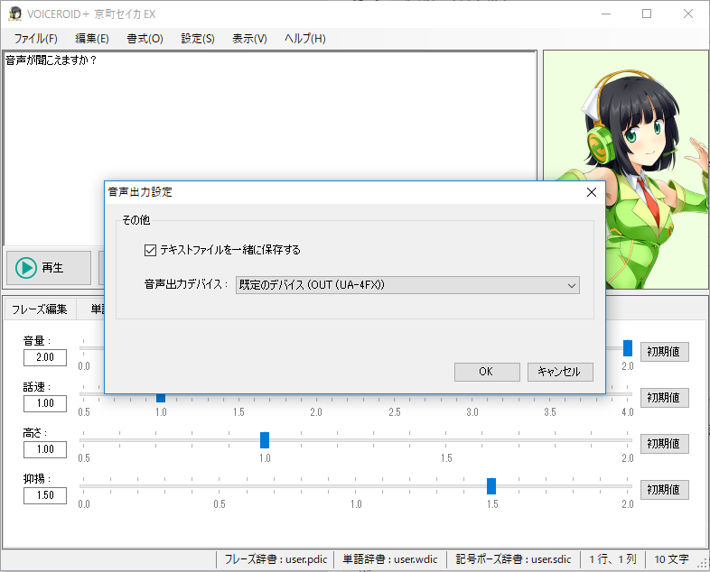 これで音声合成製品の出力音声も聞く事ができるようになりました。