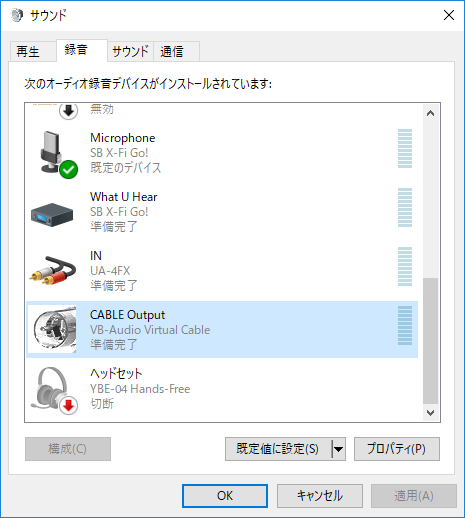 “CABLE Input(VB-Audio Virtual Cable)“には対になる”CABLE Ouput(VB-Audio Virtual Cable)“があります。