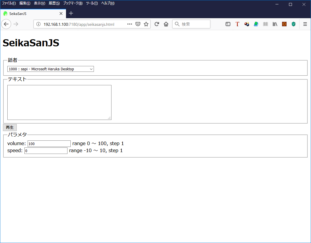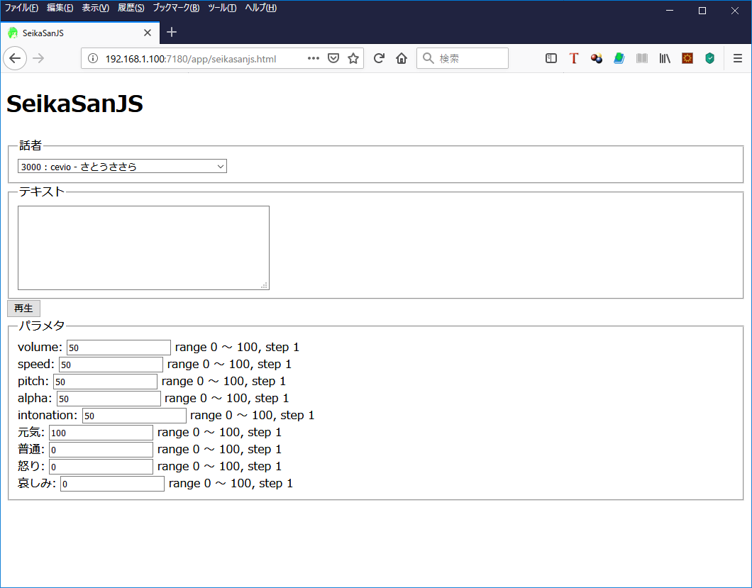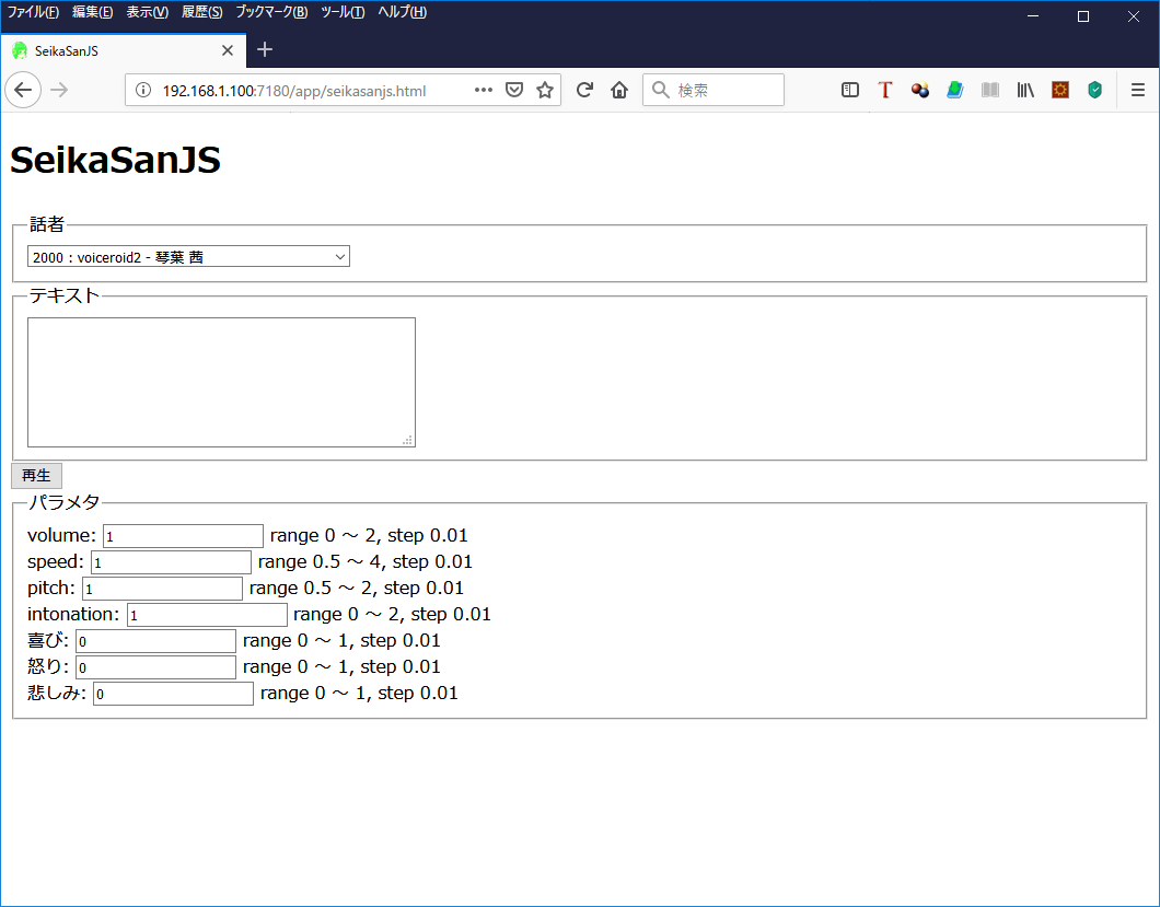SeikaCenterをWebブラウザのJavaScriptで操作するサンプルWebアプリケーション SeikaSanJS の説明。